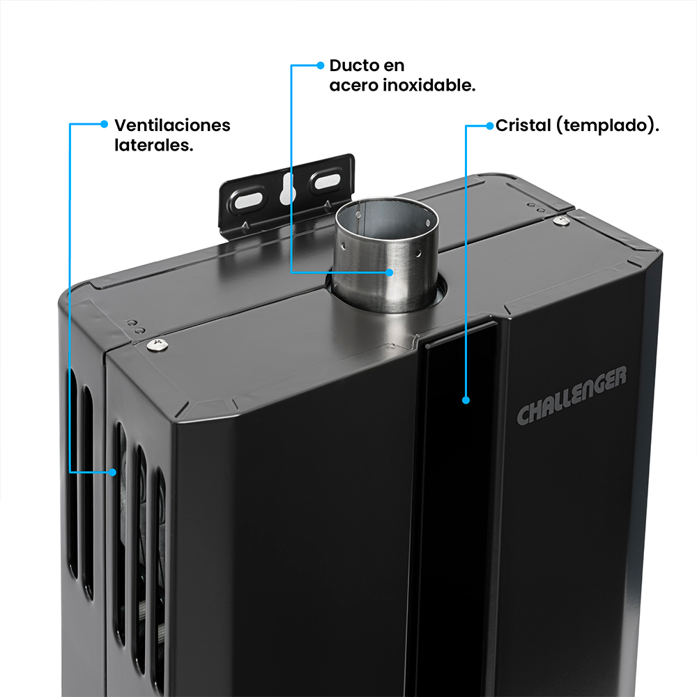 Calentador de Agua Challenger 10 litros Tiro Forzado de Paso a Gas Natural Negro