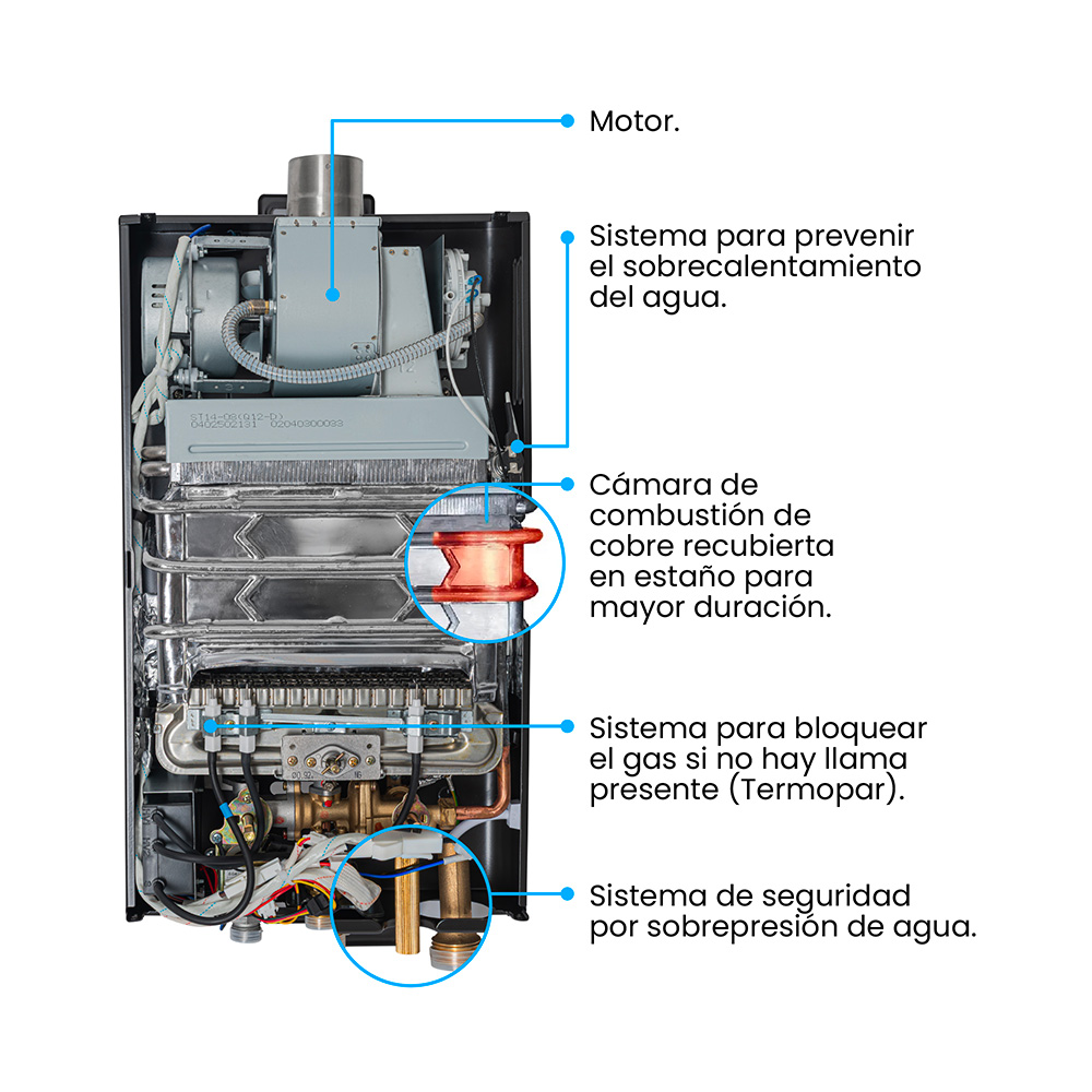 Calentador de Agua Challenger 12 litros Tiro Forzado de Paso a Gas Natural Negro